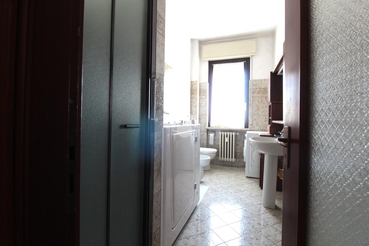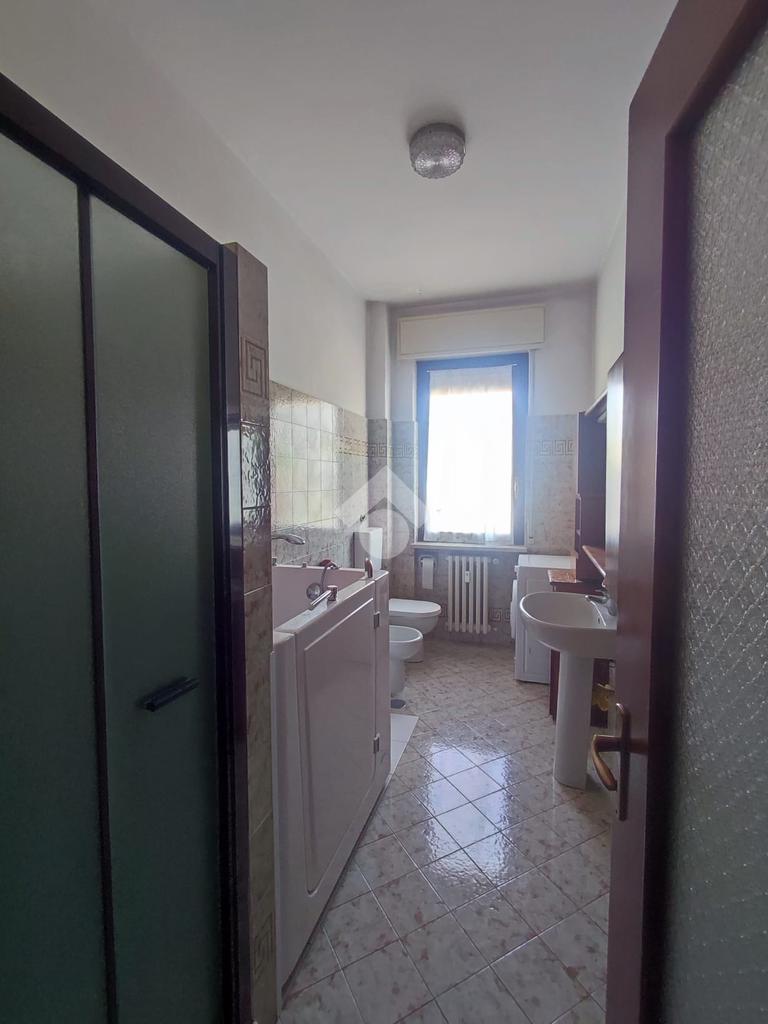 Il bagno è completo di box doccia e piccola vasca.